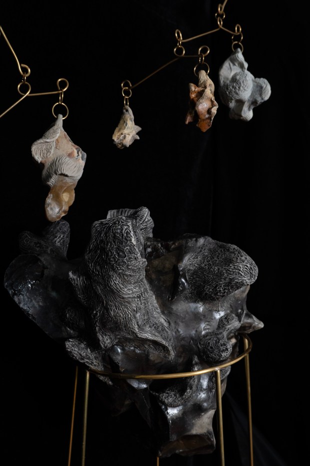 Embracing intuitive worlds; a collaborative installation in brass, muslin, and coral ghosts
