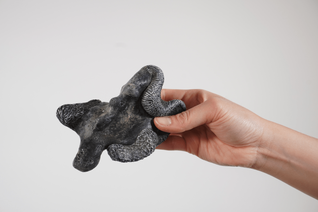 Natural stones infused with synthetic resin. An object study that reflects our transformed ecologies, where the nature has become a hybrid of both organic and synthetic matter. The stones are permanently changed via resin and imprints of coral skeletons from the Philippine coasts. They take on an organic form by immortalizing the patterns of past organisms. Just as the artist’s hands altered the surface patterns of these stones, so too does human activity alter and rearrange the natural world in permanent ways.